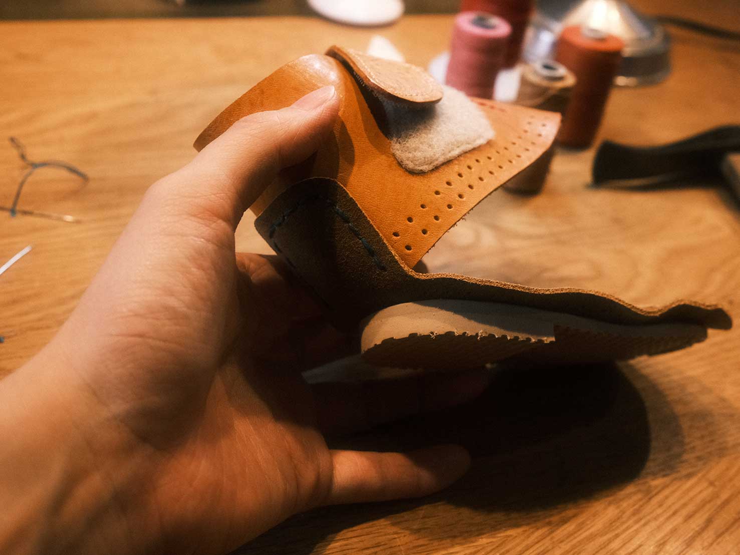 初めての革靴を作る、ということに少し不安を抱いていましたが、先生の手厚いサポートと、久々に集中して作業をすることができ、そしてできた靴を自分の子供が履いてくれるということがこんなにうれしいのかと感動しました。