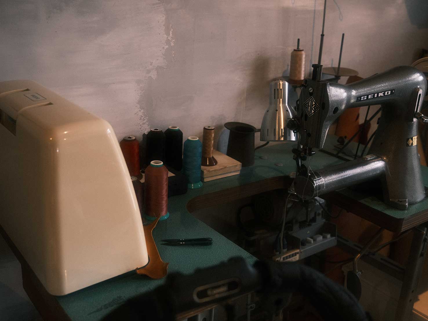 事前に革の色とサイズを選んでいたため、当日は糸の色選びと縫製が中心です。