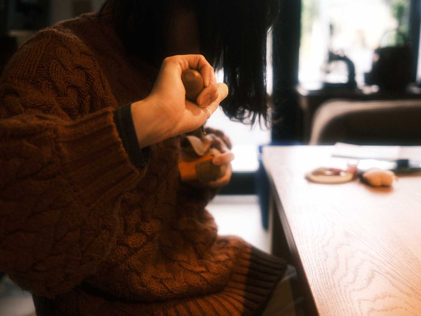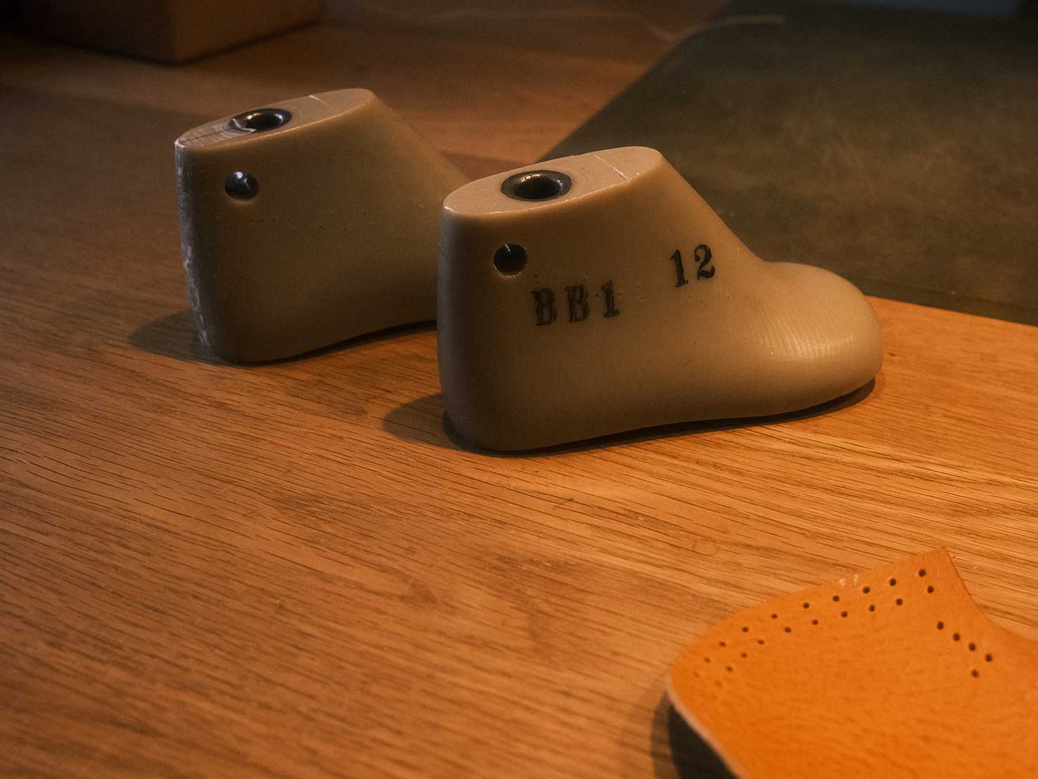 12cmのシューズを作成する過程で模型の足形?も使って形を整えるのですが、机の上にちょこんと置かれている模型がかわいく癒されました。