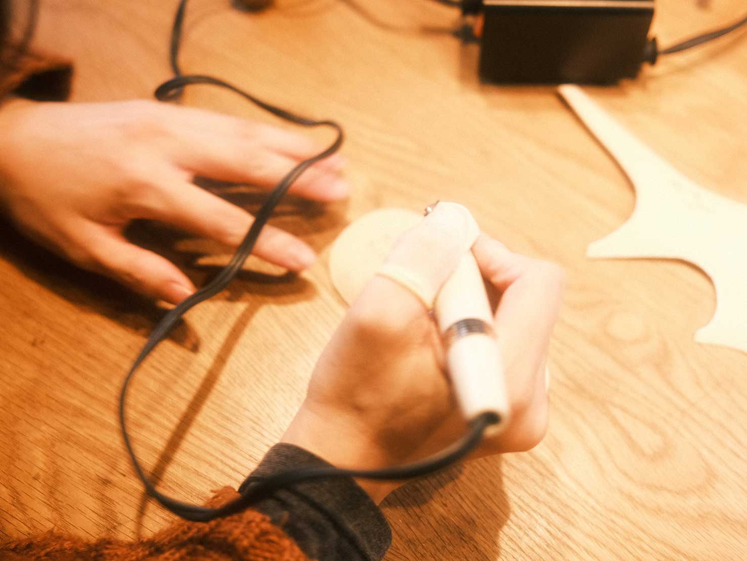 シューズを作るだけかと思いきや、さらに印象的だったのが、インソールにメッセージを焼き入れできることです。