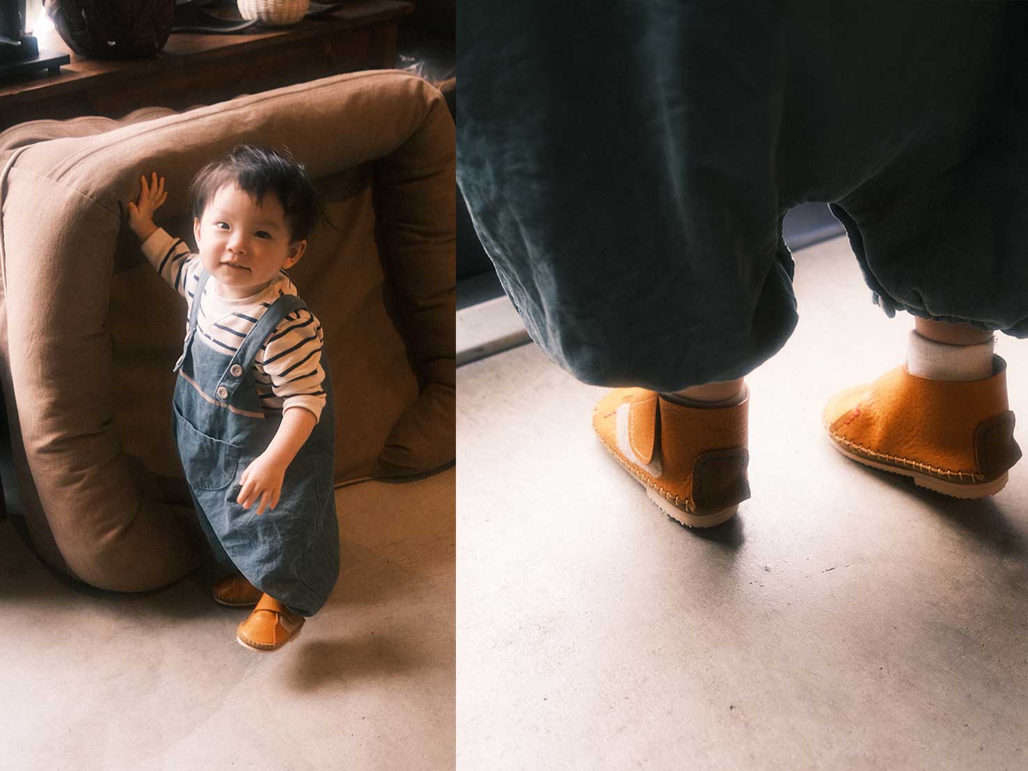 完成したシューズを履かせてみると、本人も気に入った様子で楽しそうに歩いてくれました。