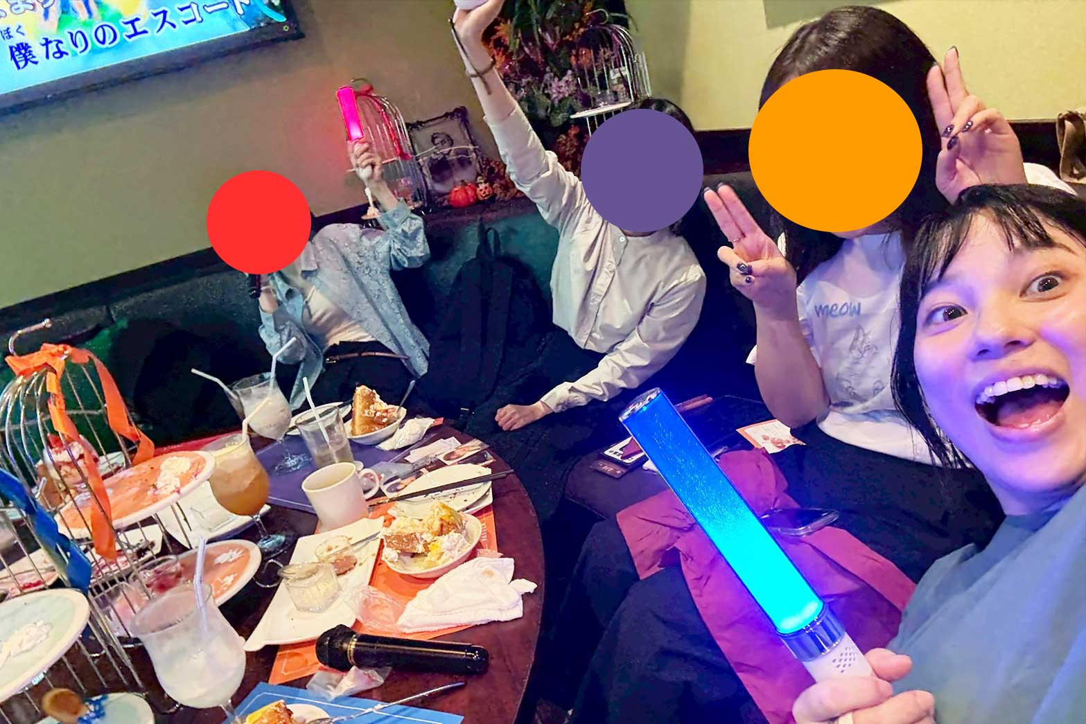 なんでも自分の”推し”のメンバーカラーをテーマにしたアフタヌーンティーを楽しめるうえに、ライブDVDやカラオケ、ペンライトのレンタルまでできてしまう夢のような空間なのです。