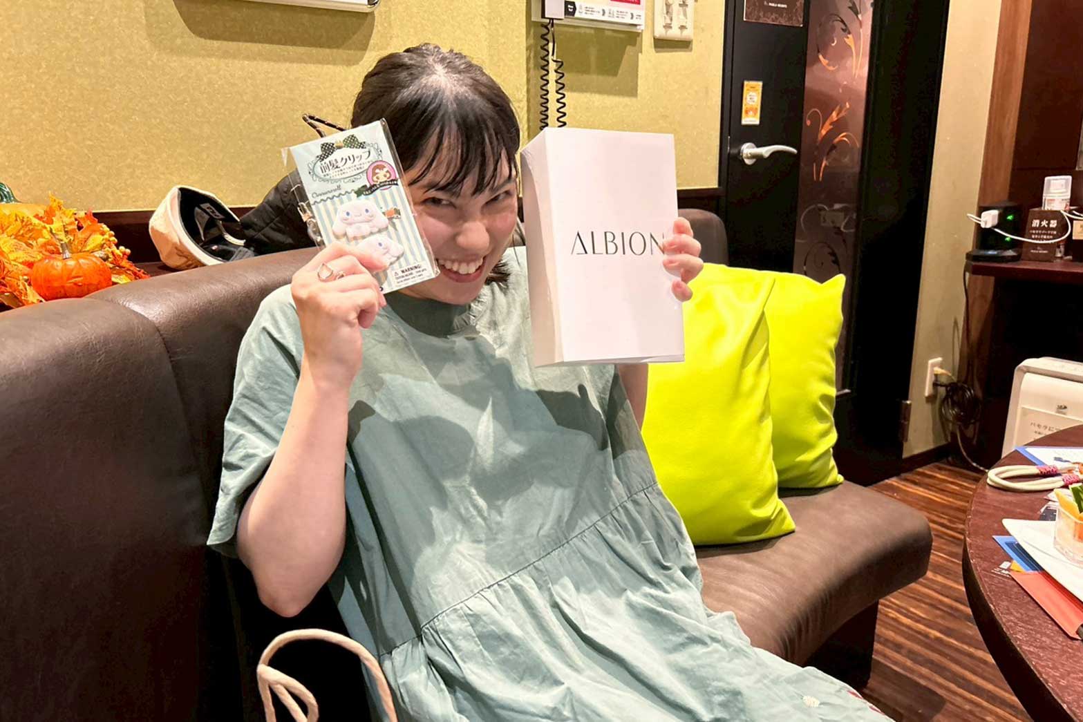 お友達からは、しょっぴーがアンバサダーを務めている【ALBION フラルネシリーズ】を一式プレゼントしてもらいました!
